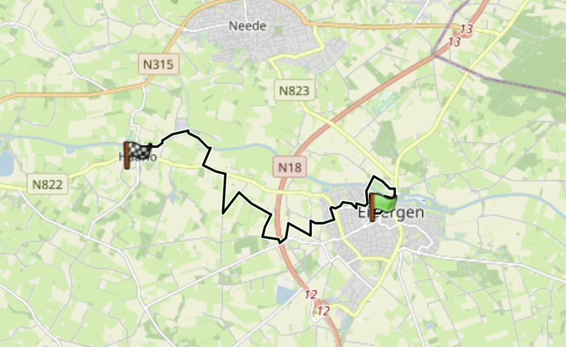 Aan het begin en aan het eind van de wandeling, in de dorpen Eibergen en Haarlo.